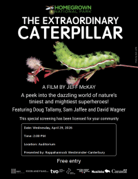 Join us for a showing of The Extraordinary Caterpillar at 2 p.m. April 29 in the RWC Auditorium. Take a peek into the dazzling world of nature’s tiniest and mightiest superheroes!