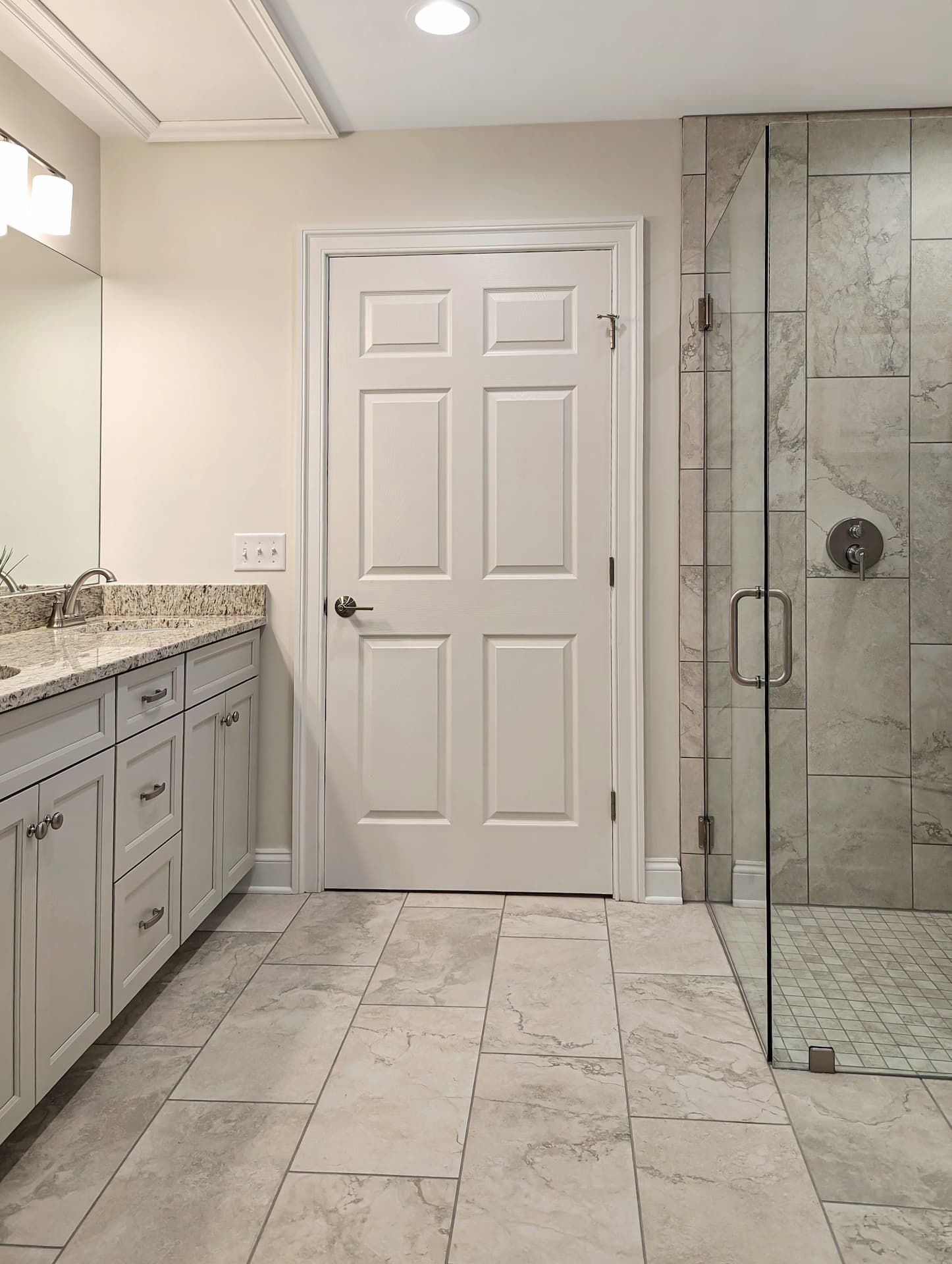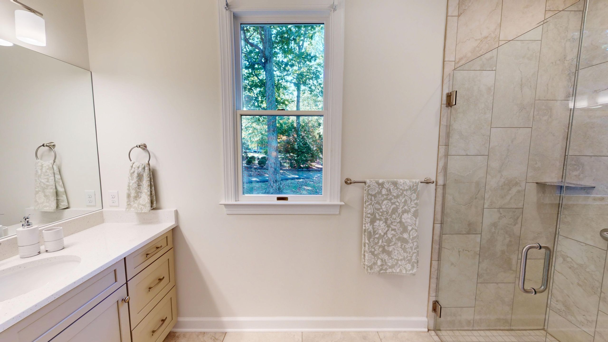 - Walk-in tile shower
