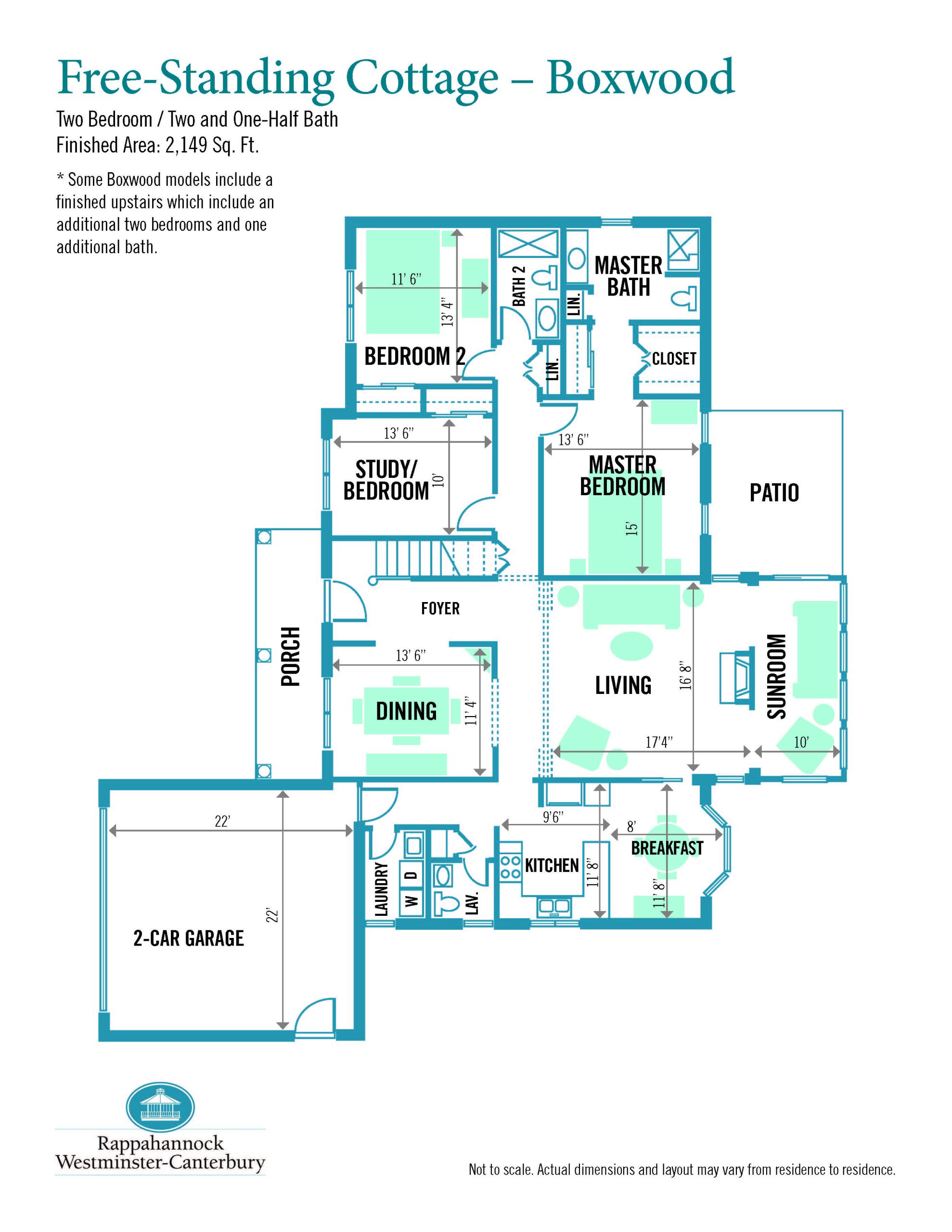 This 876-square-foot deluxe studio cottage offers an open-concept layout with a full kitchen, living, dining, and sleeping areas.